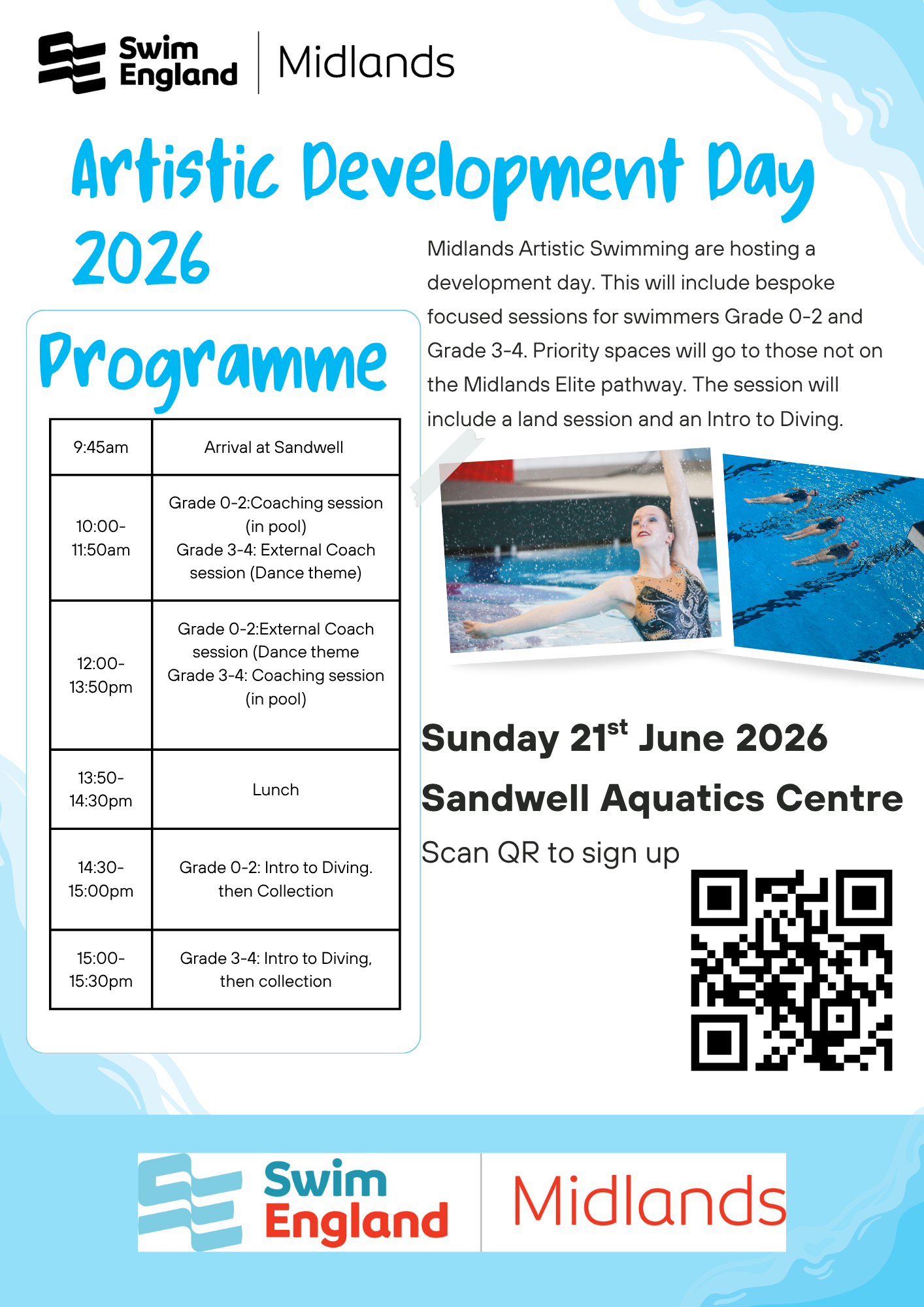 Midlands Artistic Swimming are hosting a development day for swimmers grade 0-2 and 2-3.